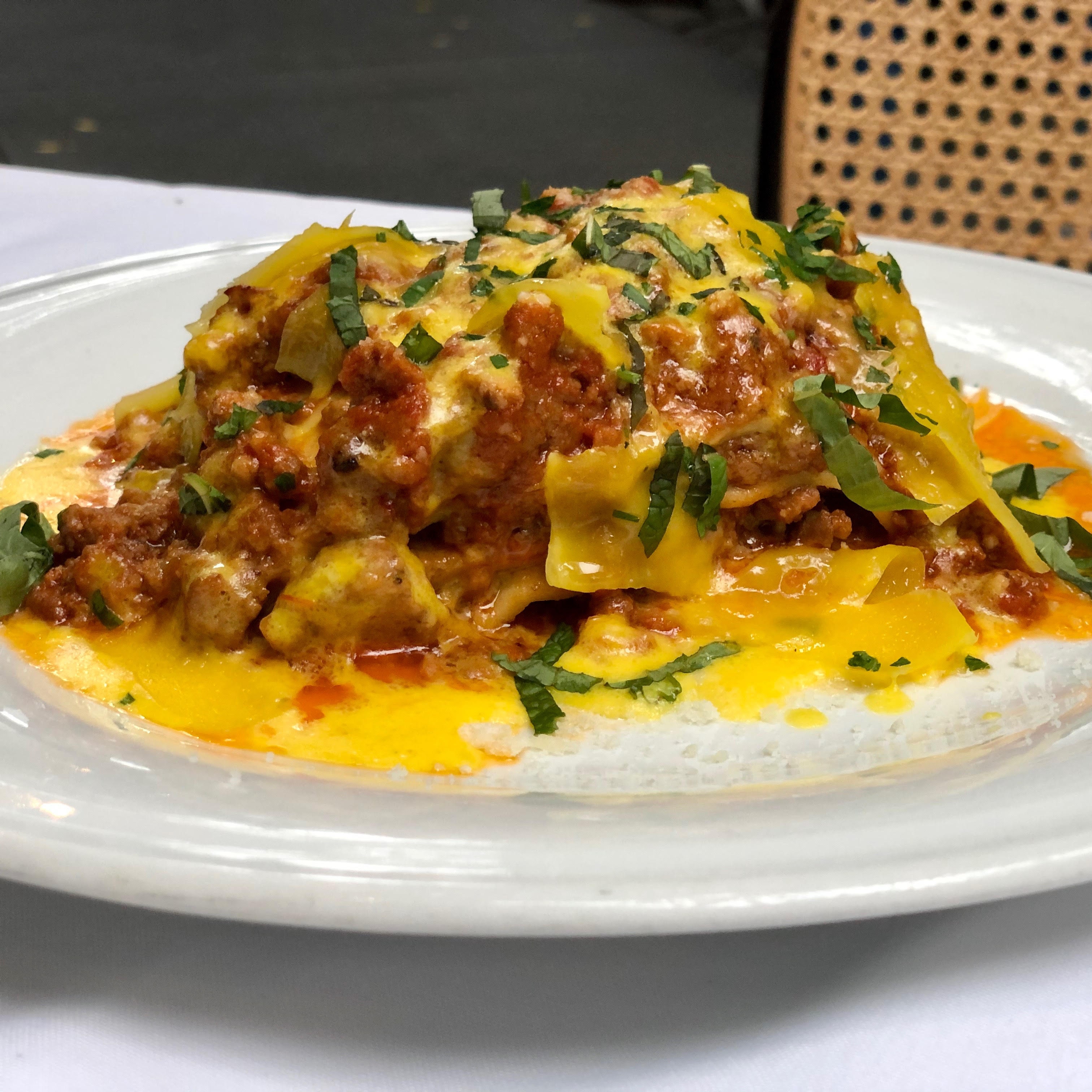 Lasagna Ennese is a robust dish that alternates layers of pork ragù and a unique saffron-infused Sicilian cheese